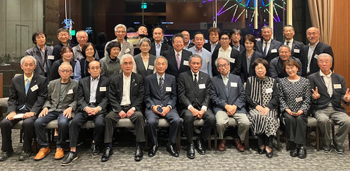 会の締めくくりには全員で校歌を合唱。柿元一雄元支部長(文学部教育学科1972年卒)による閉会の挨拶とともに、次年度の日程が報告され、最後は笑顔での記念撮影をもって閉会いたしました。