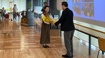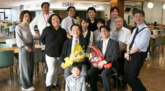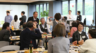 記念の集合写真の撮影を終えると、閉会の挨拶。富岡智久副会長(工学研究科機械工学専攻2003年卒)の音頭による威勢のよい一本締めが新りんどう食堂に大きく響きました。