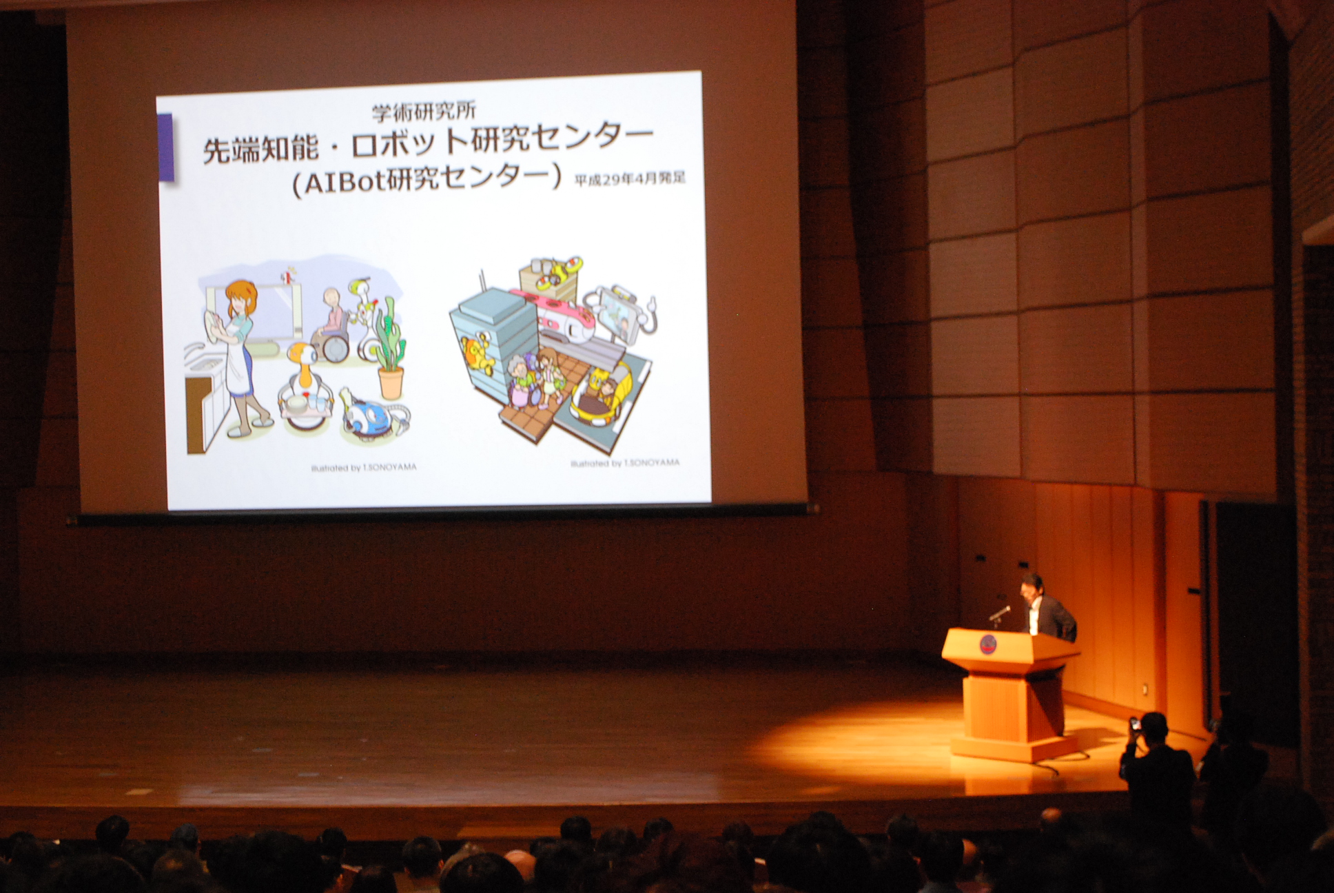 玉川大学学術研究所 AIBot 研究センター主任の岡田浩之さんによる「ロボットとAIが創る未来の社会」、