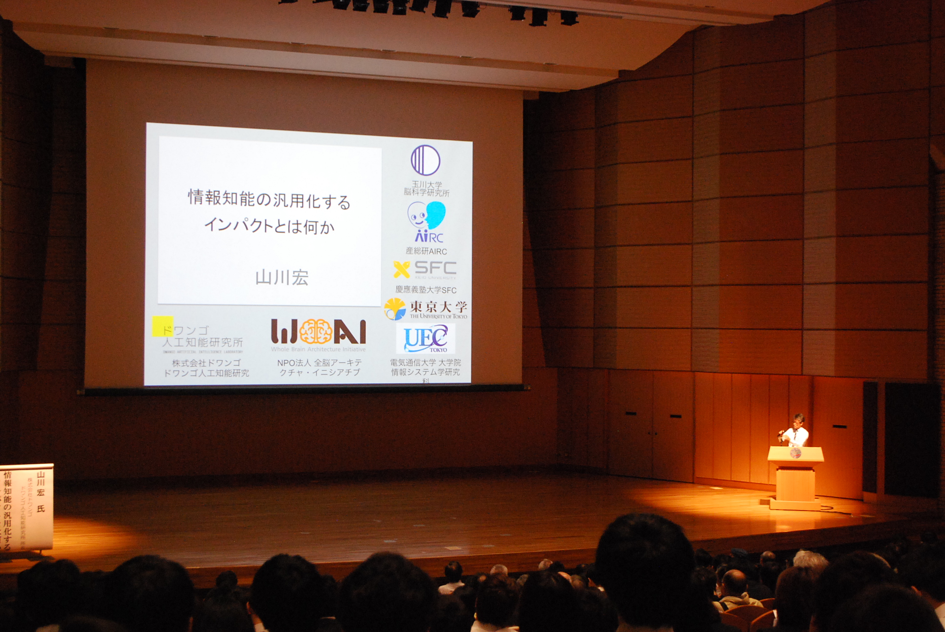 株式会社ドワンゴ ドワンゴ人工知能研究所所長の山川宏さんによる「情報知能の汎用化するインパクトとは何か」、ドローン・ジャパン株式会社取締役会長の春原久徳さんによる「ドローンが切り開く未来」、