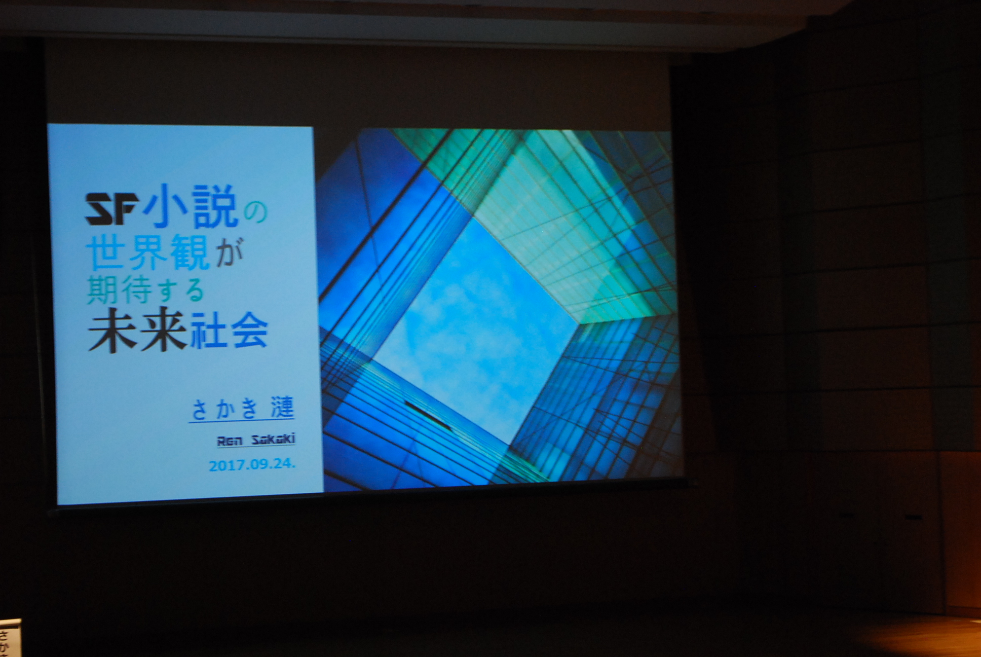 SF小説家のさかき漣さんによる「SF小説の世界観が期待する未来社会」という興味深い演題のシンポジウムが繰り広げられました。