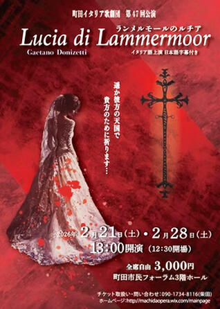 藤原歌劇団のバリトン・市川 宥一郎さん(高等部2010年卒)が、町田イタリア歌劇団オペラ『ランメルモールのルチア』にて、兄エンリーコ役をダブルキャストで2月21日(土)の回にご出演されます。